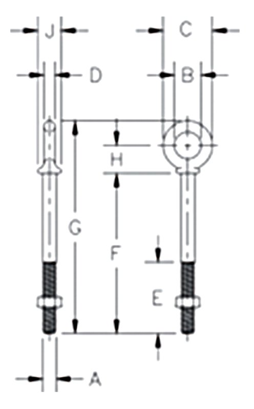 Shank Diameter & Length (in) | Working Load Limit (lb) | Weight Each (lb) | Dimensions (in) | ||||||||